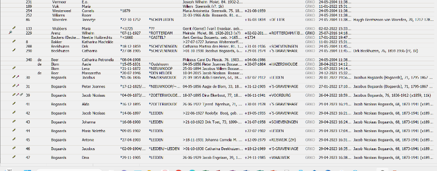 Ik kan de personenlijst niet opnieuw op alfabet Achternaam zetten. De aanwijzing in Aldfaer werkt niet. De personenlijst bevat namen met een code en zonder code. Het lijkt wel of de lijst uit 2 gedeelten bestaat De achternamen bevatten echter geen dubbele personen. Hoe kan ik de lijst wel in de goede volgorde krijgen.