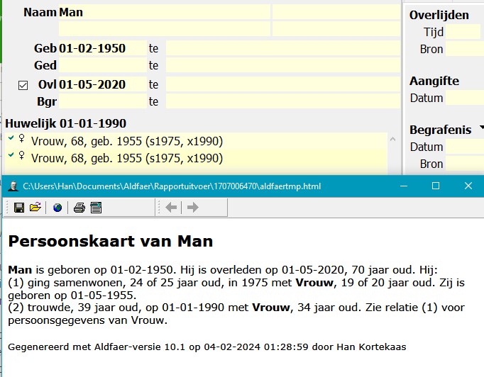 Als ik zijn overlijden invul komt er bij mij in het tabblad "Persoon" de opmerking te staan "ex-partner overleden".