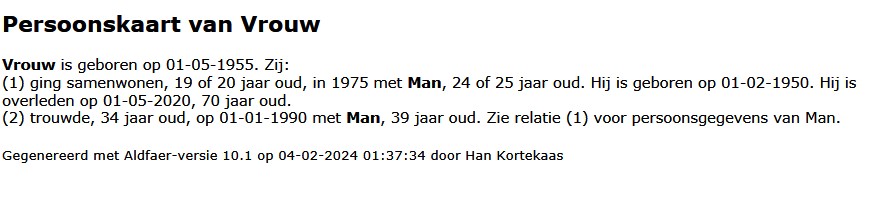 Mijn partner (later mijn echtgenoot) staat in mijn record er dus 2x in.