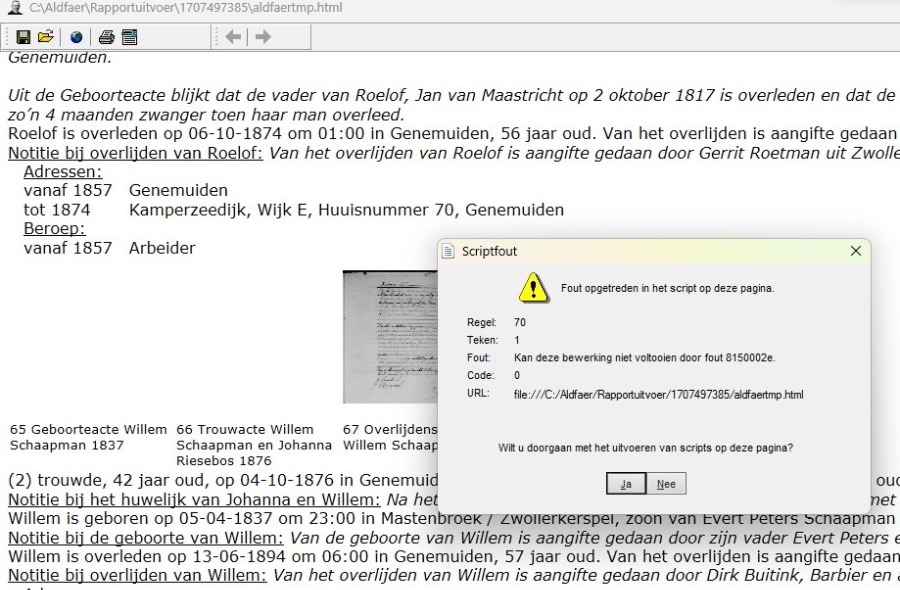 Als ik op de plek van het plaatje klik (in het Aldfaerscherm) verschijnt soms (niet altijd) de bijgevoegde foutmelding over een script.