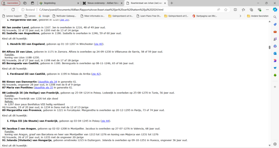 Wanneer ik een uitdraai maak van een kwartierstaat komen meerdere personen terug onder opeenvolgende generaties (zie bijgaand voorbeeld).